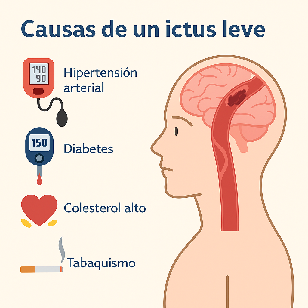 Las causas de un ictus leve son similares a las de un ictus más severo, pero pueden manifestarse con menor intensidad. Algunas de las más comunes son: