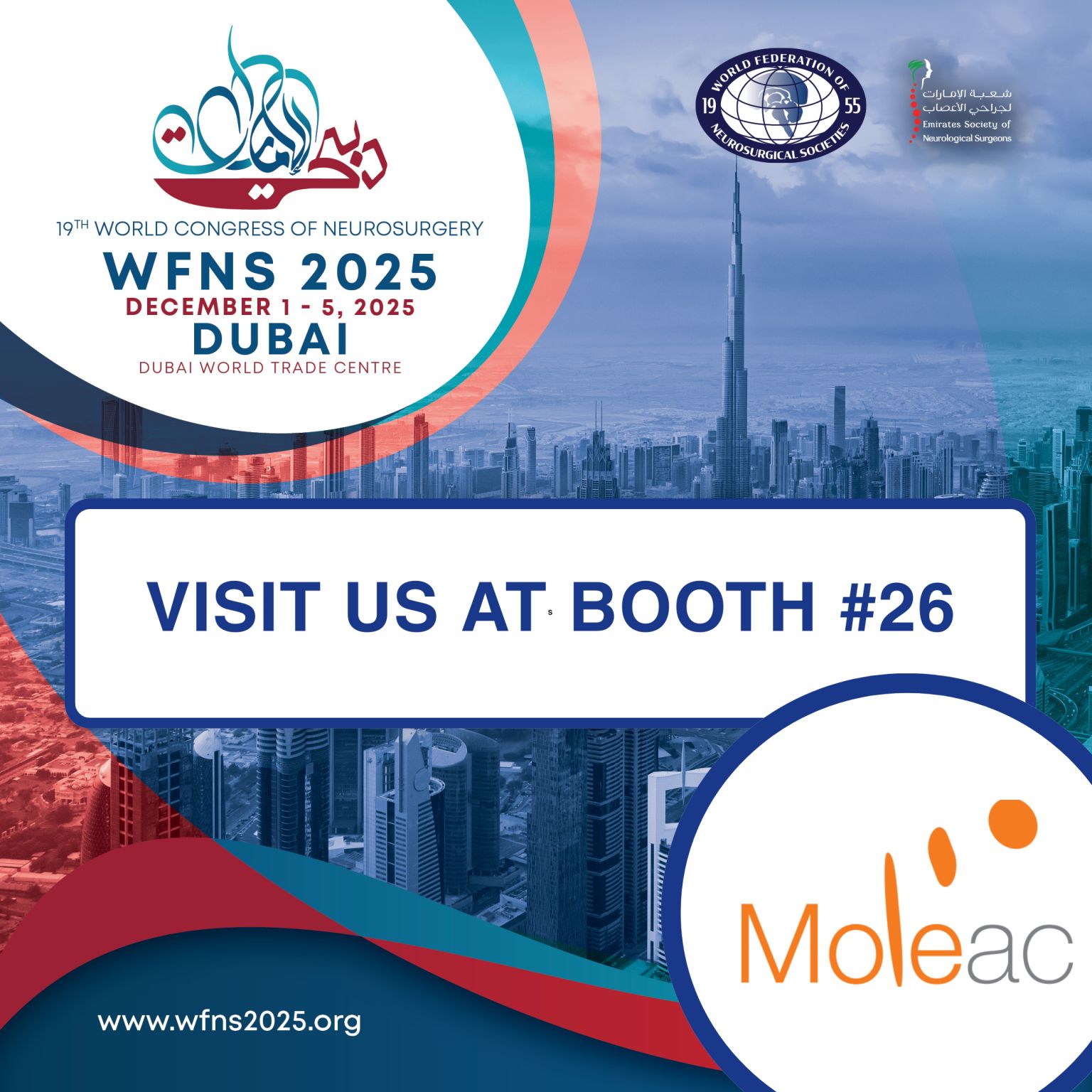 Moleac will be attending the 19ᵗʰ World Congress of Neurosurgery (WFNS) in Dubai from December 1–5, 2025.